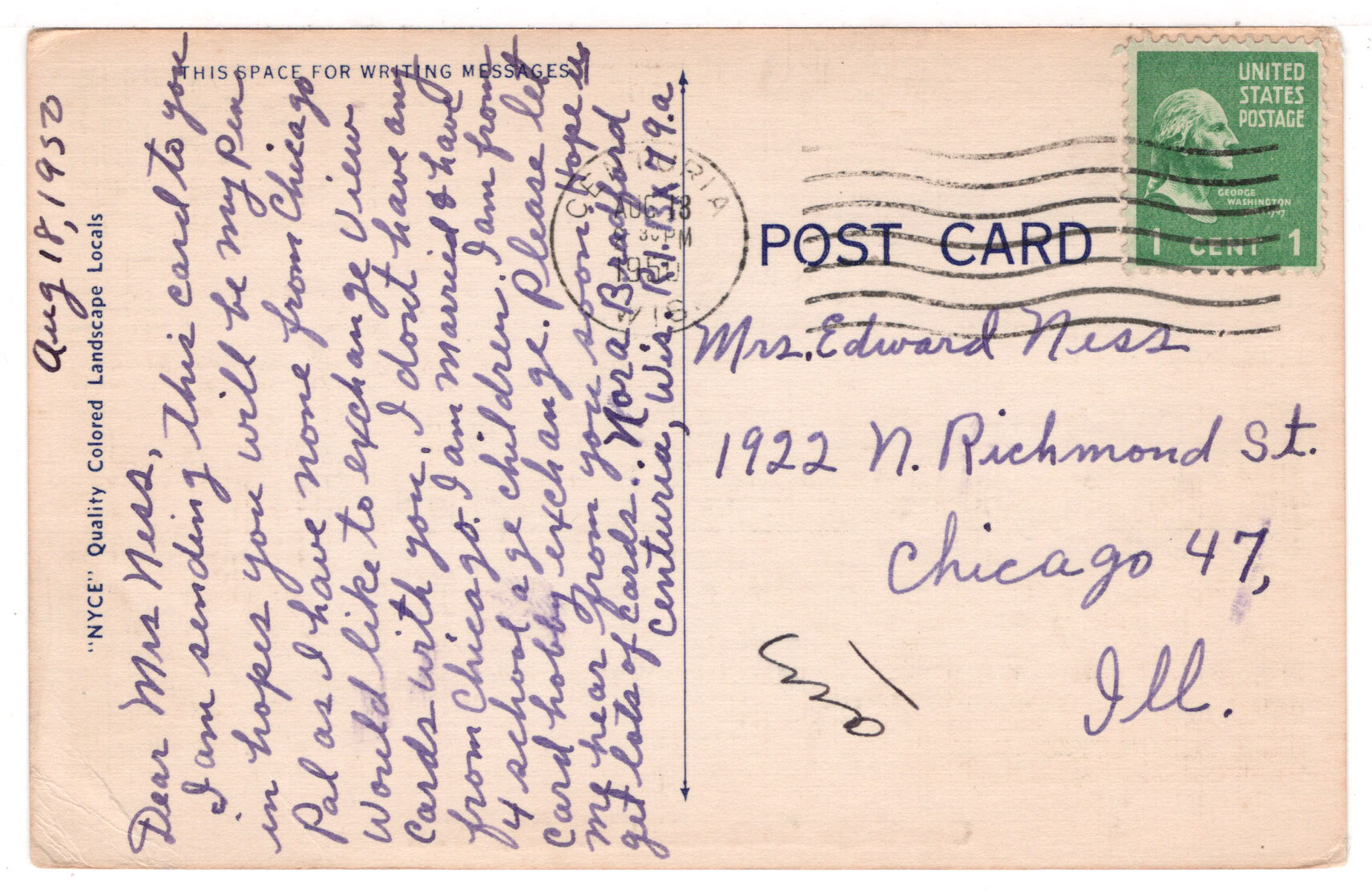 Postcards are shown from Actual Scan - Post Marked August 13, 1950 in Very Good Condition.Seller Information