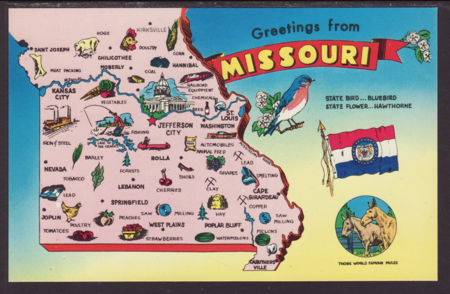 Greetings From Missouri,Map Postcard