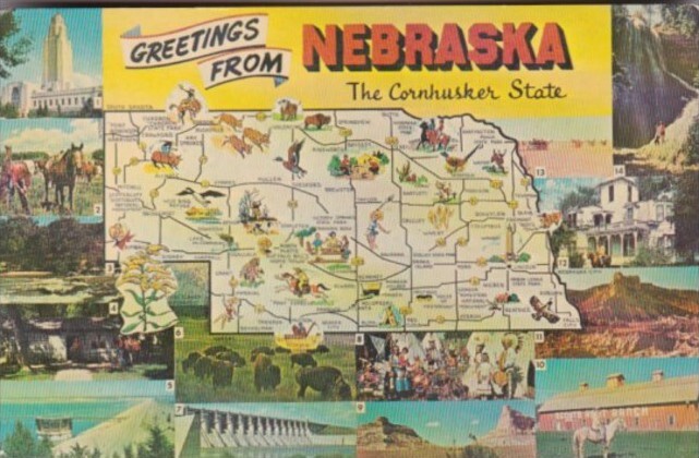 Greetings From Nebraska The Cornshusker State With Map 1965