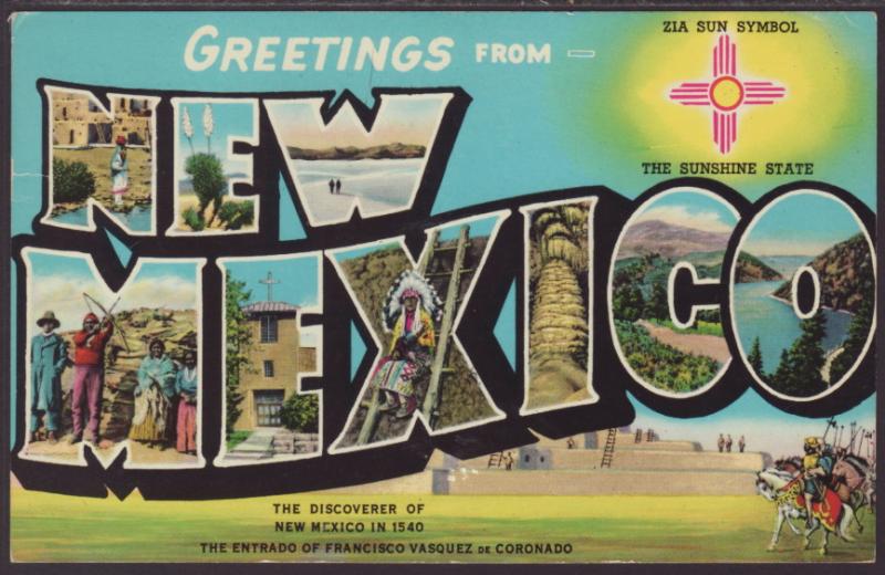 Greetings From New Mexico Postcard  Chrome divided back Postally used Hello and welcome to our bin. Due to the heavy volume of postcards that we have to list, Postcards listed as unused may have a small penci ... Read More
