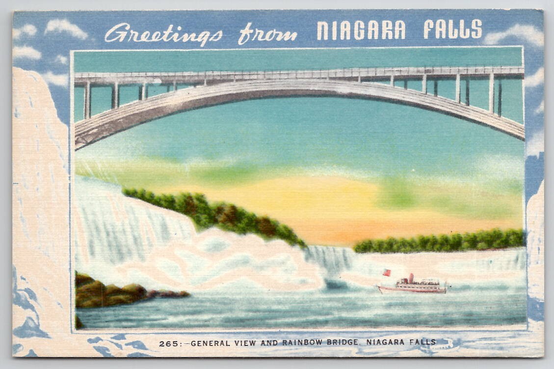 Greetings From Niagara Falls Linen Waterfall Postcard K34