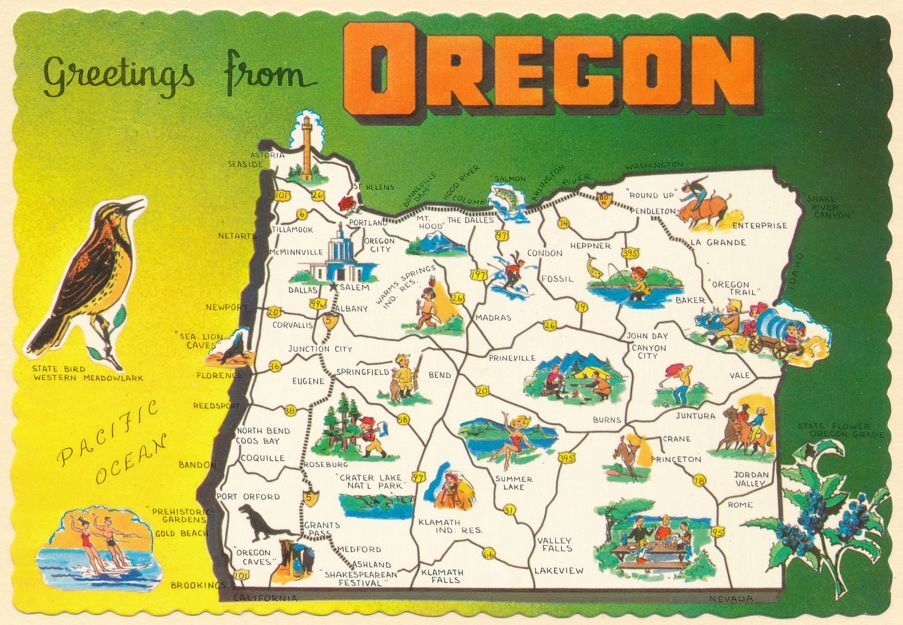 Greetings from Oregon - Map - State Bird Western Meadowlark