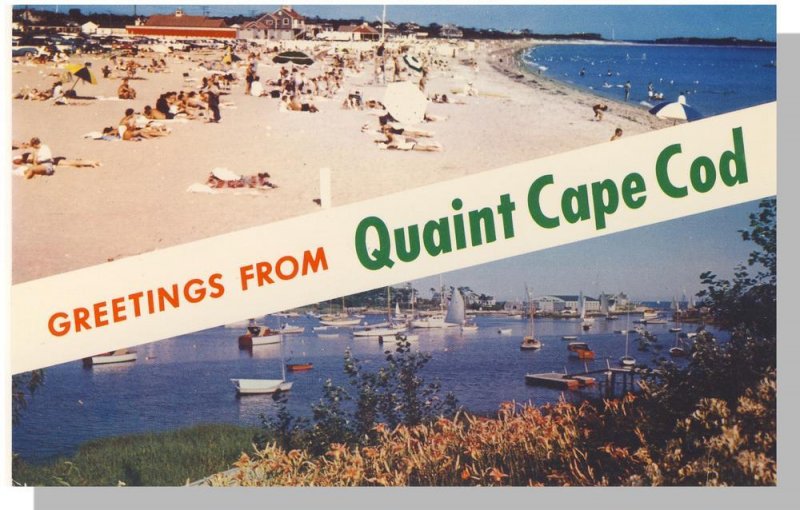 Greetings From Quaint Cape Cod Postcard,Beach/Harbor, Massachusetts/Mass/MA