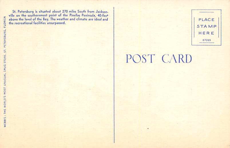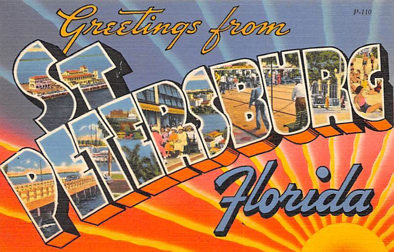 Greetings From St Petersburg Florida Postcard - Unused Grade: 1 Size: R - Regular size: Approx 3 1/2 X 5 1/2 inch (9 cm X 14 cm) Grading Scale: Grade 1 = Perfect corners Grade 2 = Very Minimal corner wear, no ... Read More