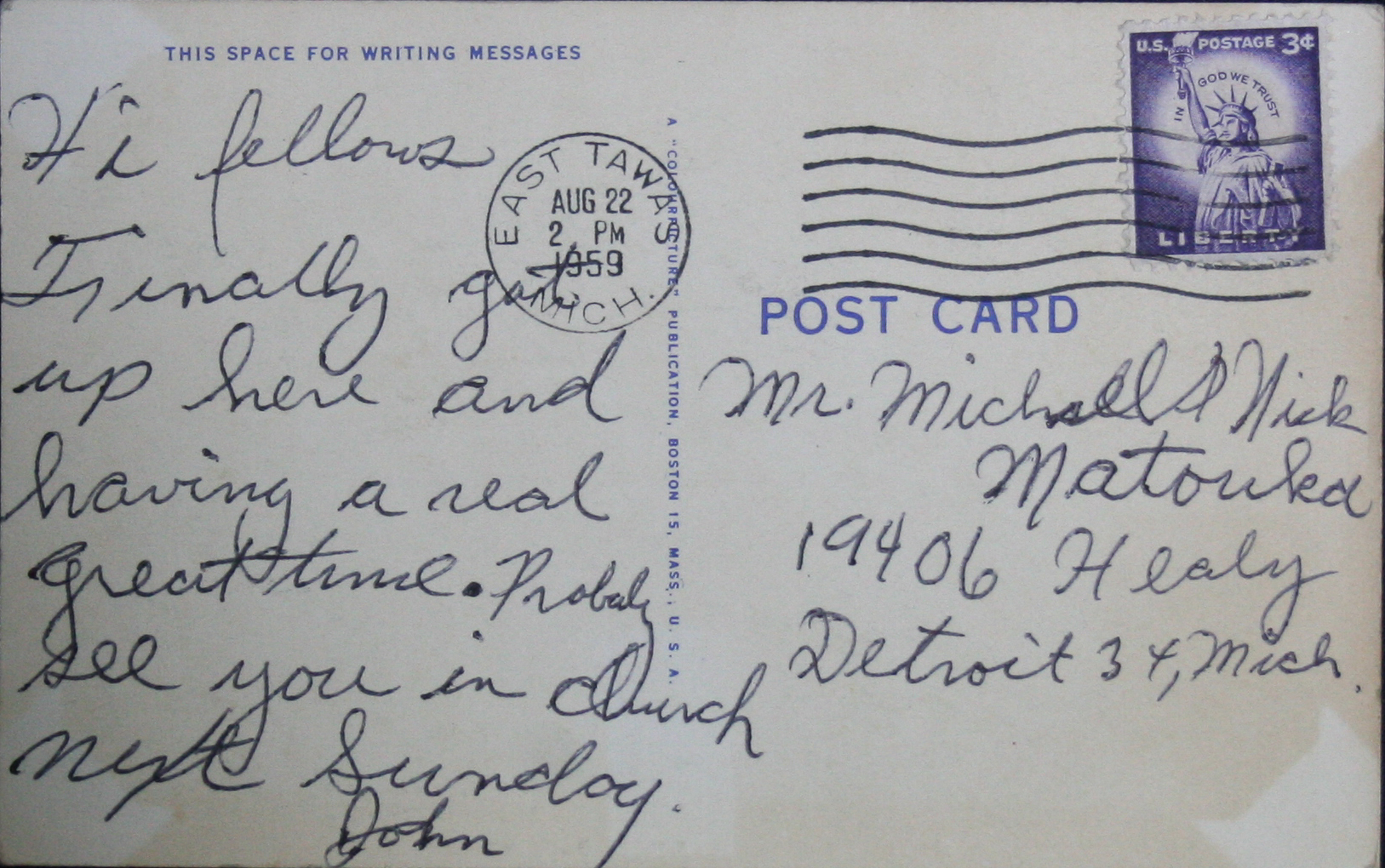 Postmarked Aug. 22, 1959Seller Information