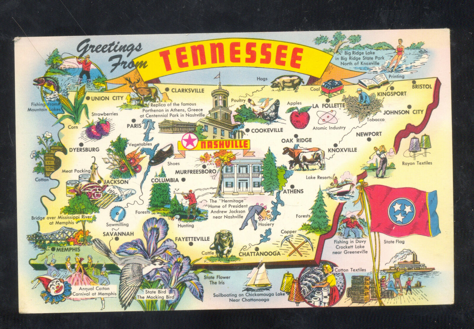 GREETINGS FROM TENNESSEE STATE MAP POSTCARD