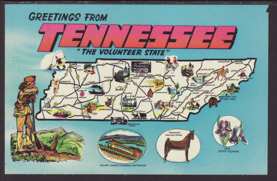 Greetings From Tennessee,Map Postcard