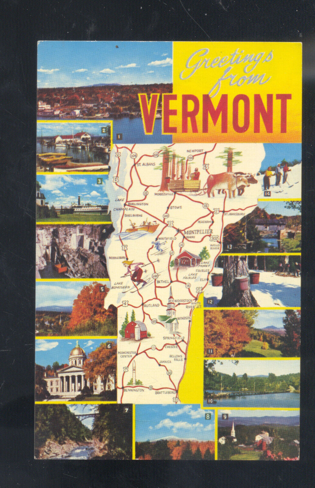 GREETINGS FROM VERMONT STATE MAP VT. VINTAGE POSTCARD