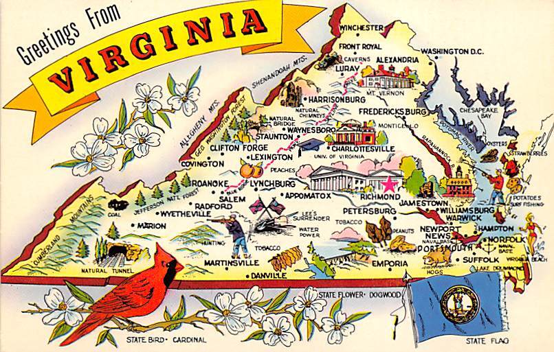 Greetings from Virginia, USA Map Postcard Postal Date: Unused Grade: 1 Size: Regular Size Postcard - approximately 3 1/2 inch x 5 1/2 inch (9 CM x 14 CM) Grading Scale: Grade 1 = Perfect corners Grade 2 = Ver ... Read More