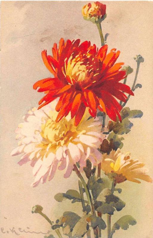 Greetings Orange White Flowers Signed Klein Antique Postcard J52499