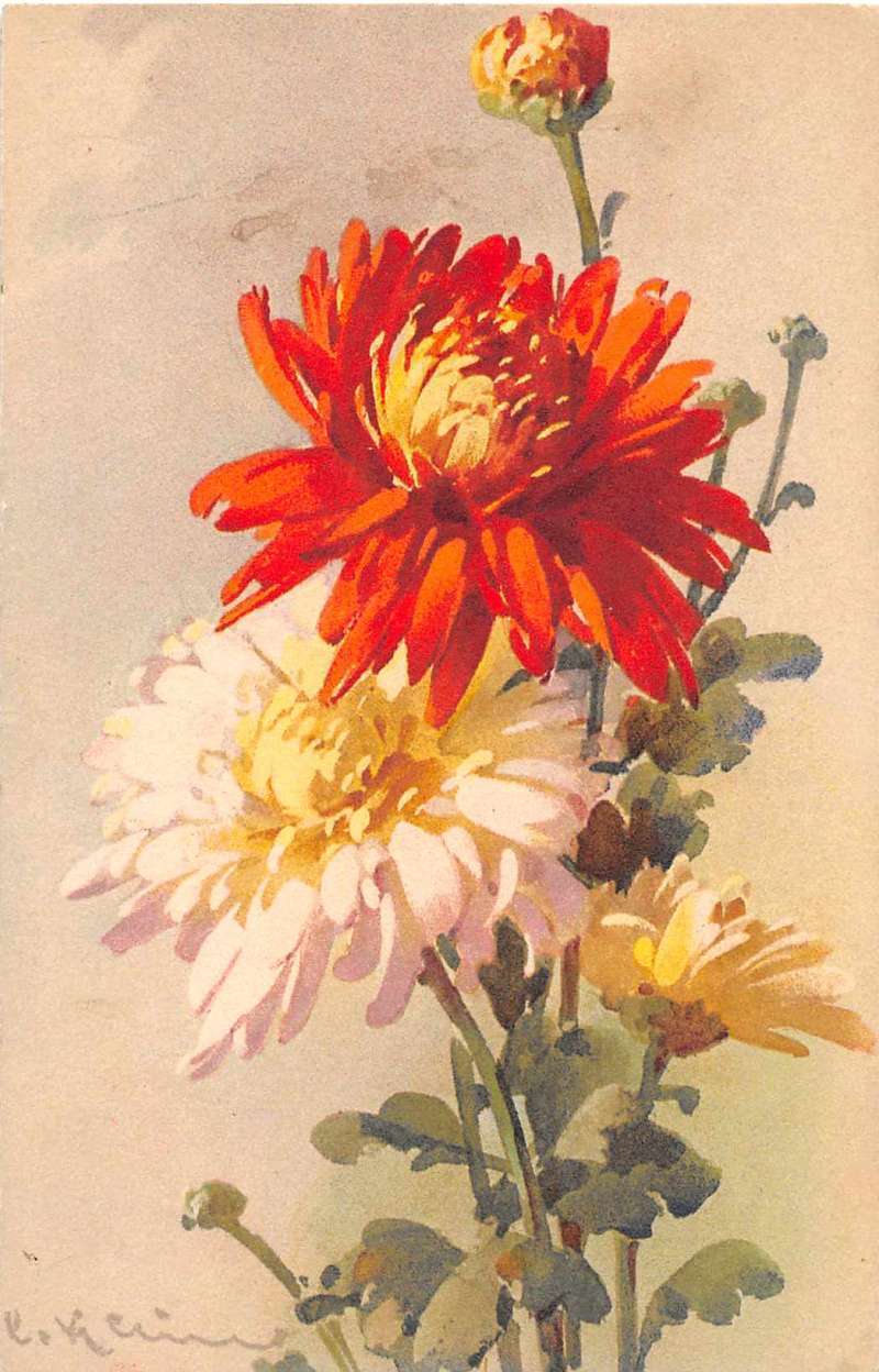 Greetings Orange White Flowers Signed Klein Antique Postcard J52499 Fair Condition. Please disregard the letter and number in the title. It is for our inventory only.