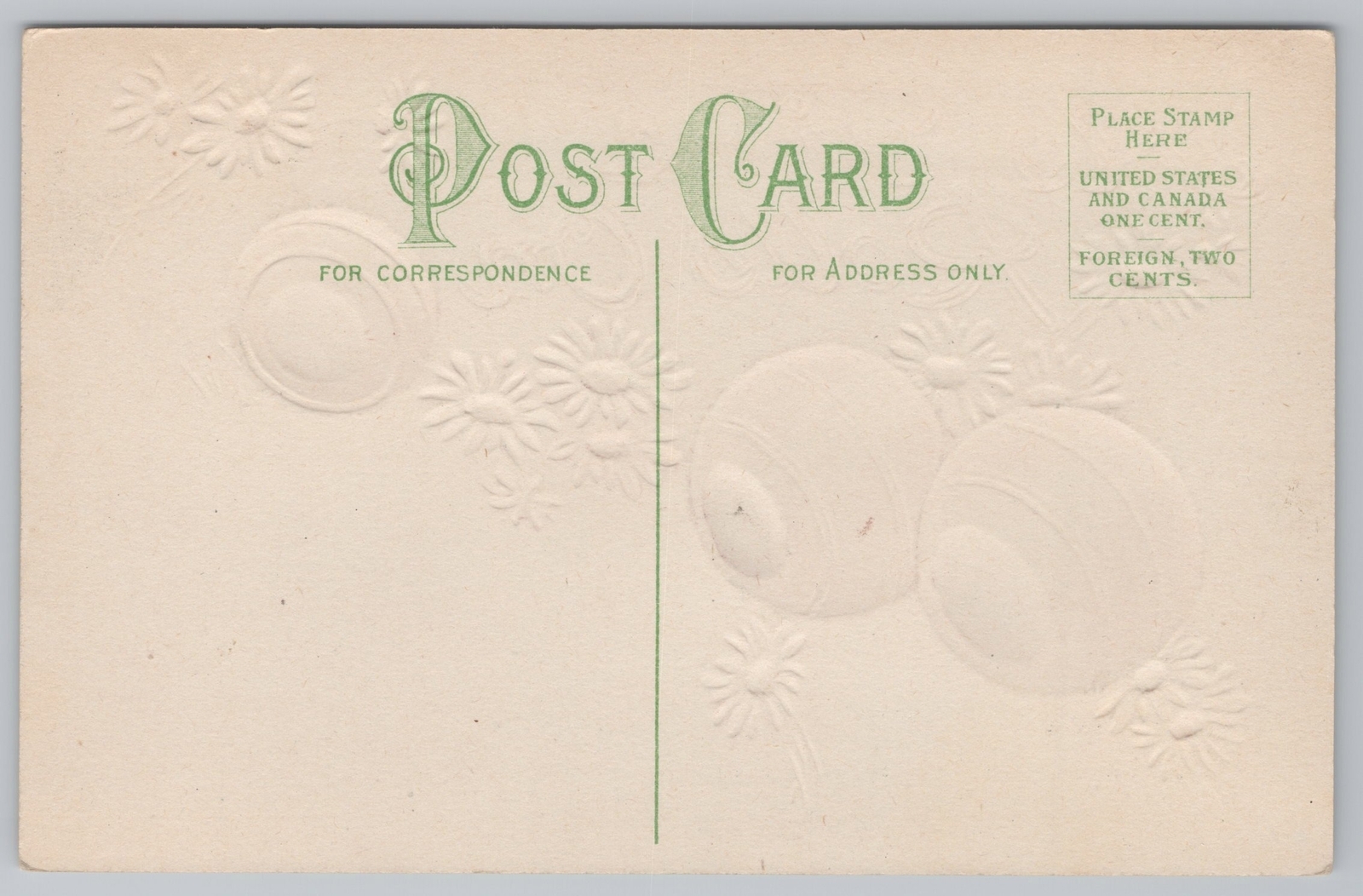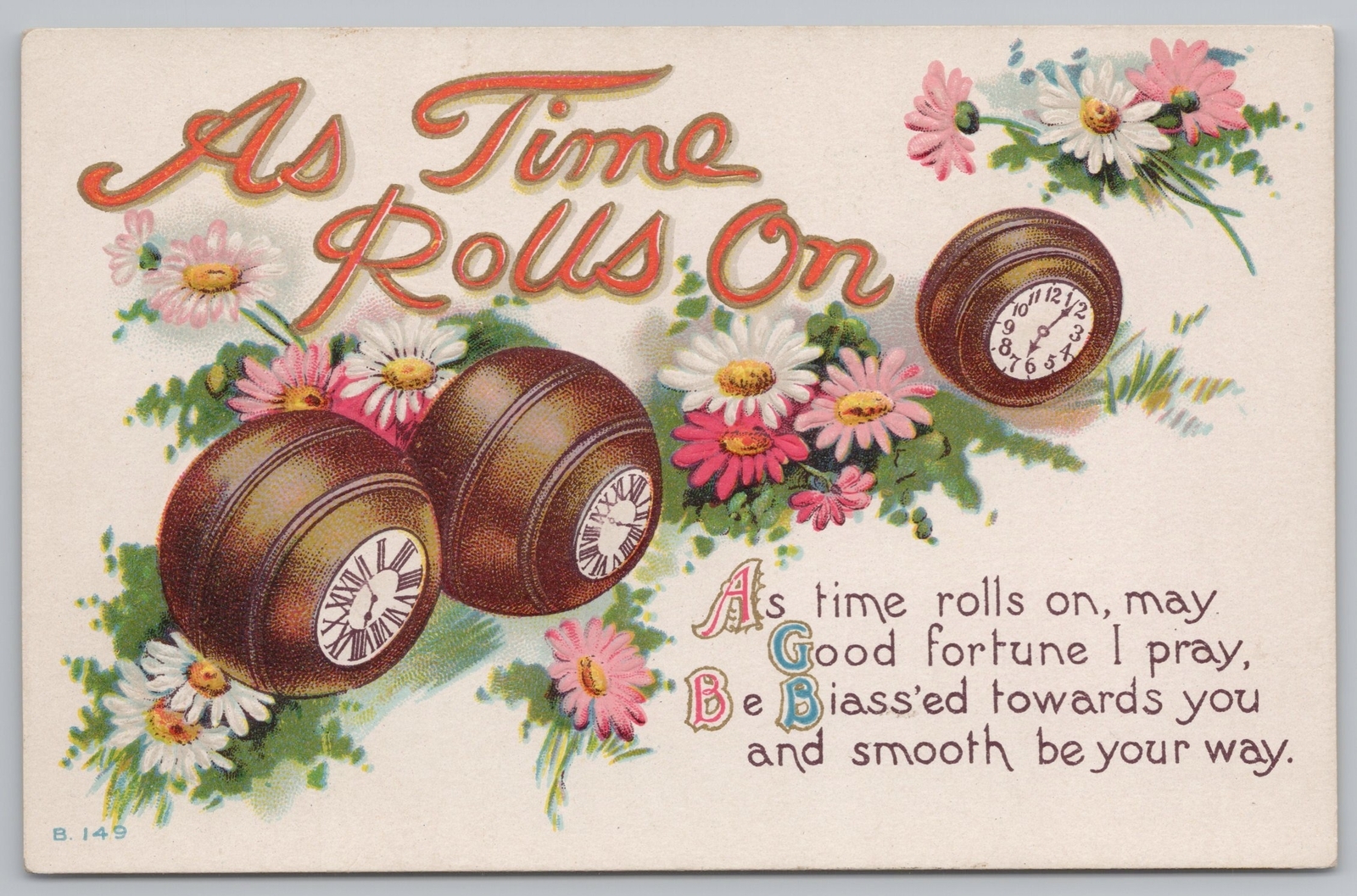 Greetings~As Time Rolls On~Clocks & Various Daisy Flowers~Embossed~Vintage PC