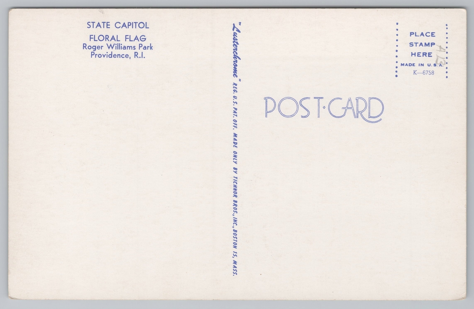 Greetings~Providence RI~Floral Flag~Roger Williams Park~Capital~Lusterchrome~Vtg