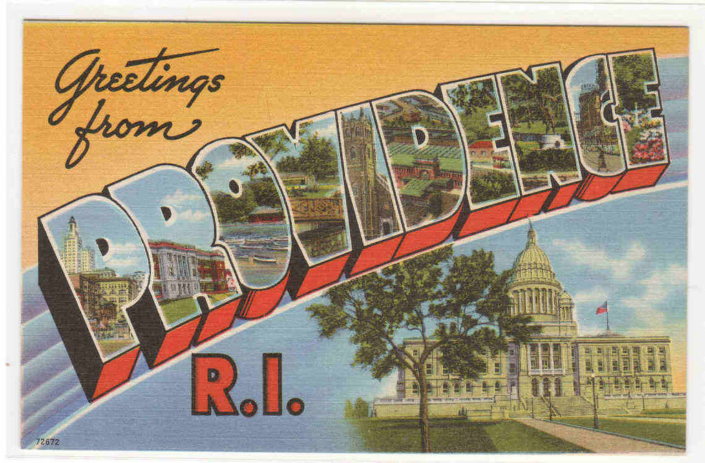 Greetngs From Providence Rhode Island Large Letter linen postcard