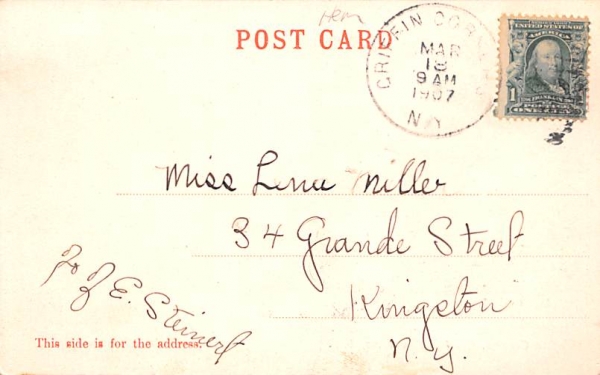 Griffin Corners Grand Gorge, New York Postcard Grand Gorge NY Year date of postcard, or postal used / year used: 1907 Grade: 1 Size: R Type: 5 Griffin Corners in Grand Gorge, New York vintage postcard from o ... Read More