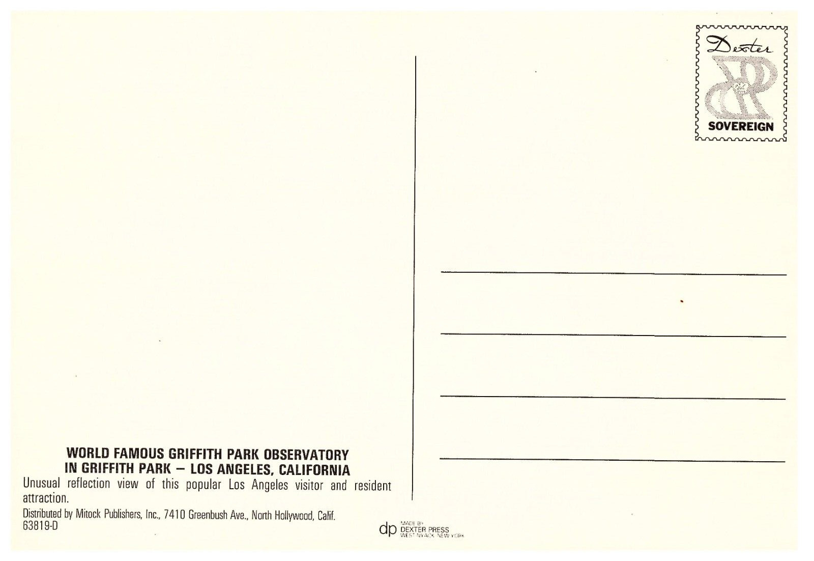 Griffith Park Observatory Reflection Old Car Los Angeles CA Continental Postcard