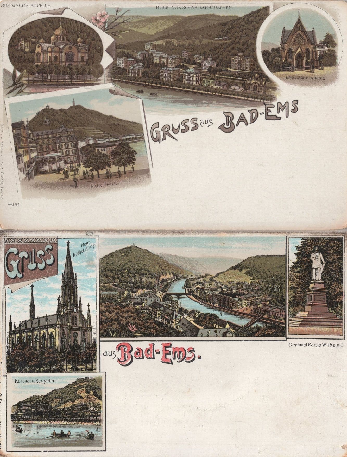 Gruss Aus Bad-Ems 2x Old Rare German Postcard s