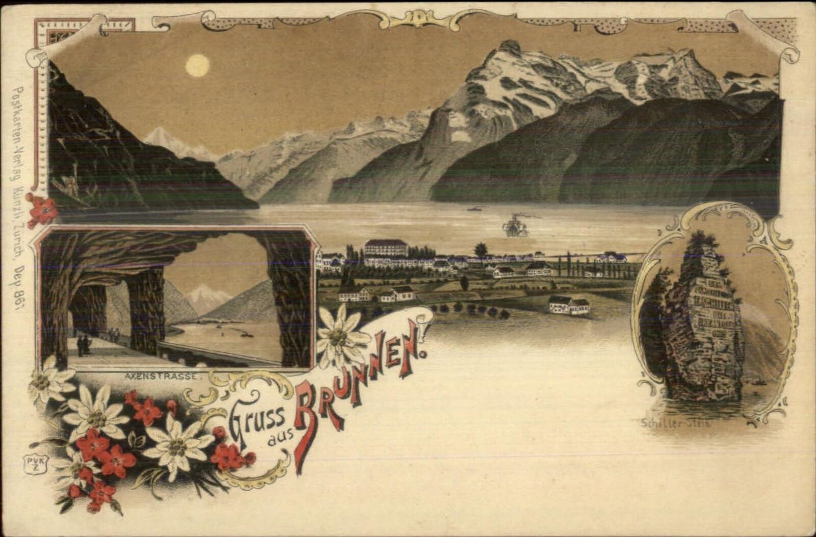 Gruss Aus Brunnen Switzerland c1900 Postcard