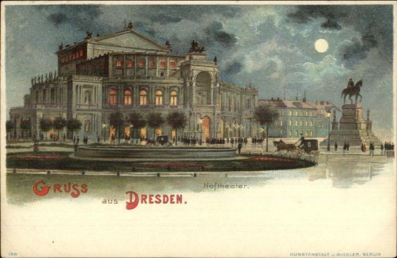 Gruss Aus Dresden Germany Hoftheater Moonlight c1900 Lithograph Postcard