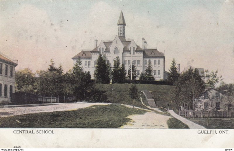 GUELPH , Ontario ,1900-10s ; Central School :: Postcard, 3.5 by 5.5, Litho