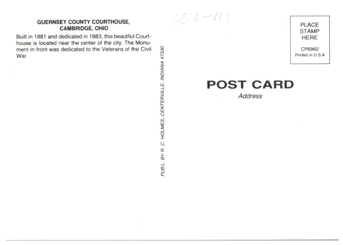 Guernsey County Courthouse Cambridge Ohio Postcard