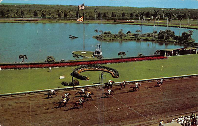 Gulfstream Race Track Winners Circle Postal Date: 1957, missing stamp Grade: 2 Size: Regular Size Postcard - approximately 3 1/2 inch x 5 1/2 inch (9 CM x 14 CM) Grading Scale: Grade 1 = Perfect corners Grade ... Read More