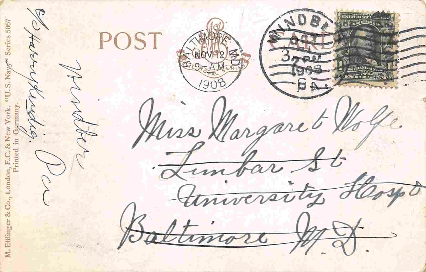 Gun Practice USS Illinois US Navy Battleship 1908 postcard