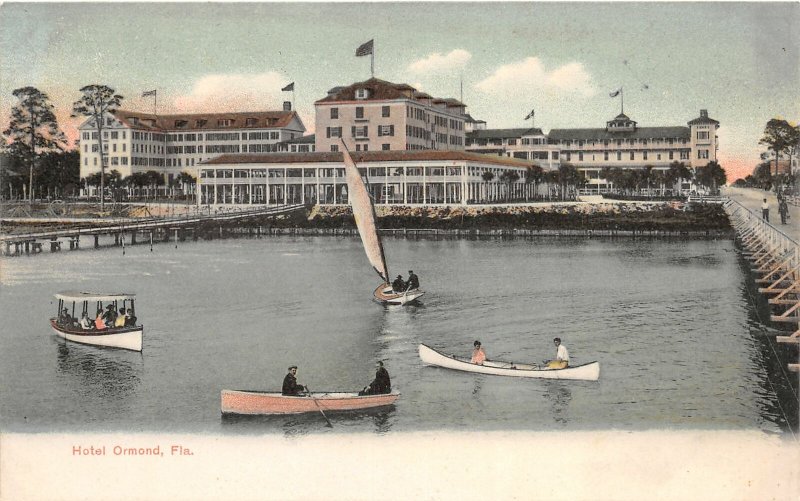 H25/ Ormond Florida Postcard c1910 Hotel Ormond Sailboat Pier