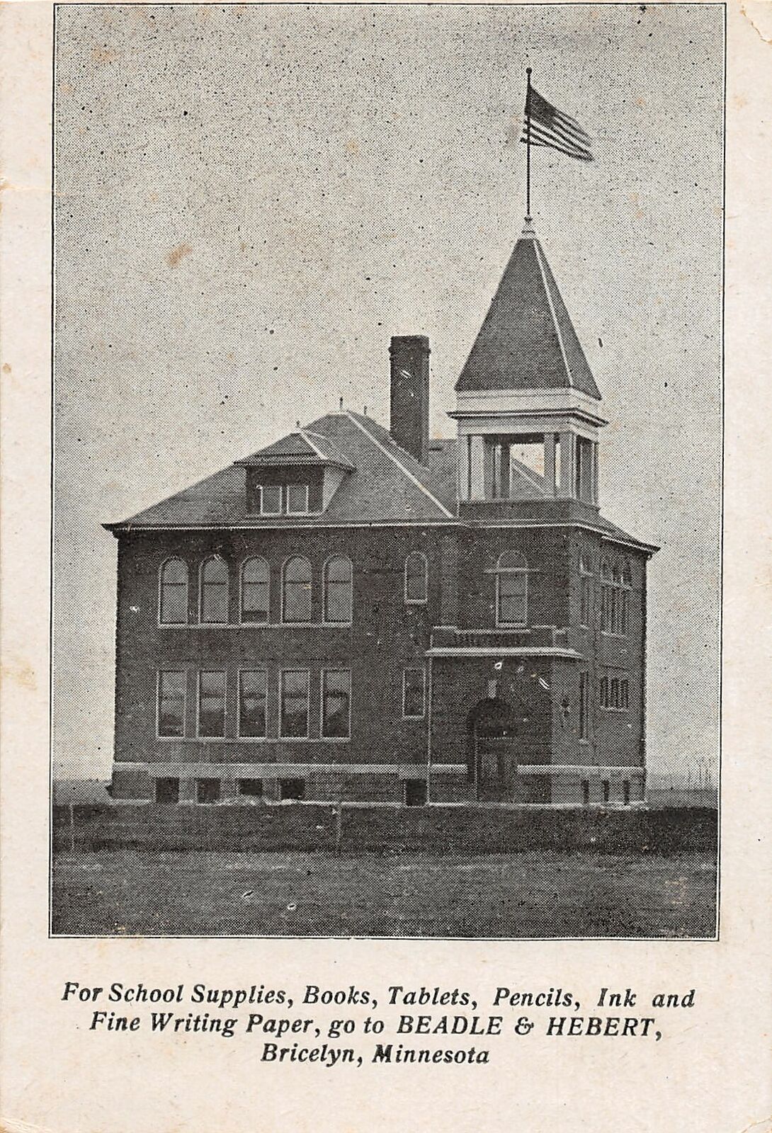 H66/ Bricelyn Minnesota Postcard c1909 Beadle & Hebert School Supply Ad 116