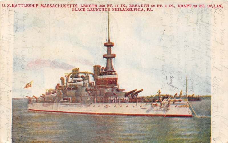 H80/ U.S. Navy Ship Postcard c1915 Battleship U.S.S. Massachusetts 123