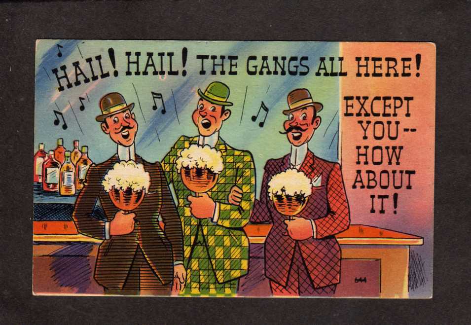 Hail Hail Gang All Here Except You Bar Drinking Humor Comic Postcard