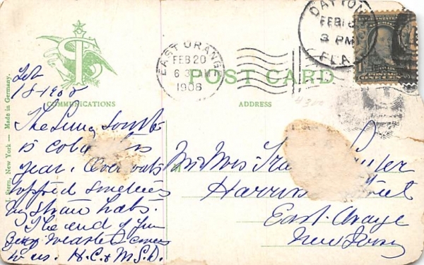 Halifax River Florida Postcard - 1908 Grade: 5 Size: R - Regular size: Approx 3 1/2 X 5 1/2 inch (9 cm X 14 cm) Grading Scale: Grade 1 = Perfect corners Grade 2 = Very Minimal corner wear, no creases Grade 3 = ... Read More