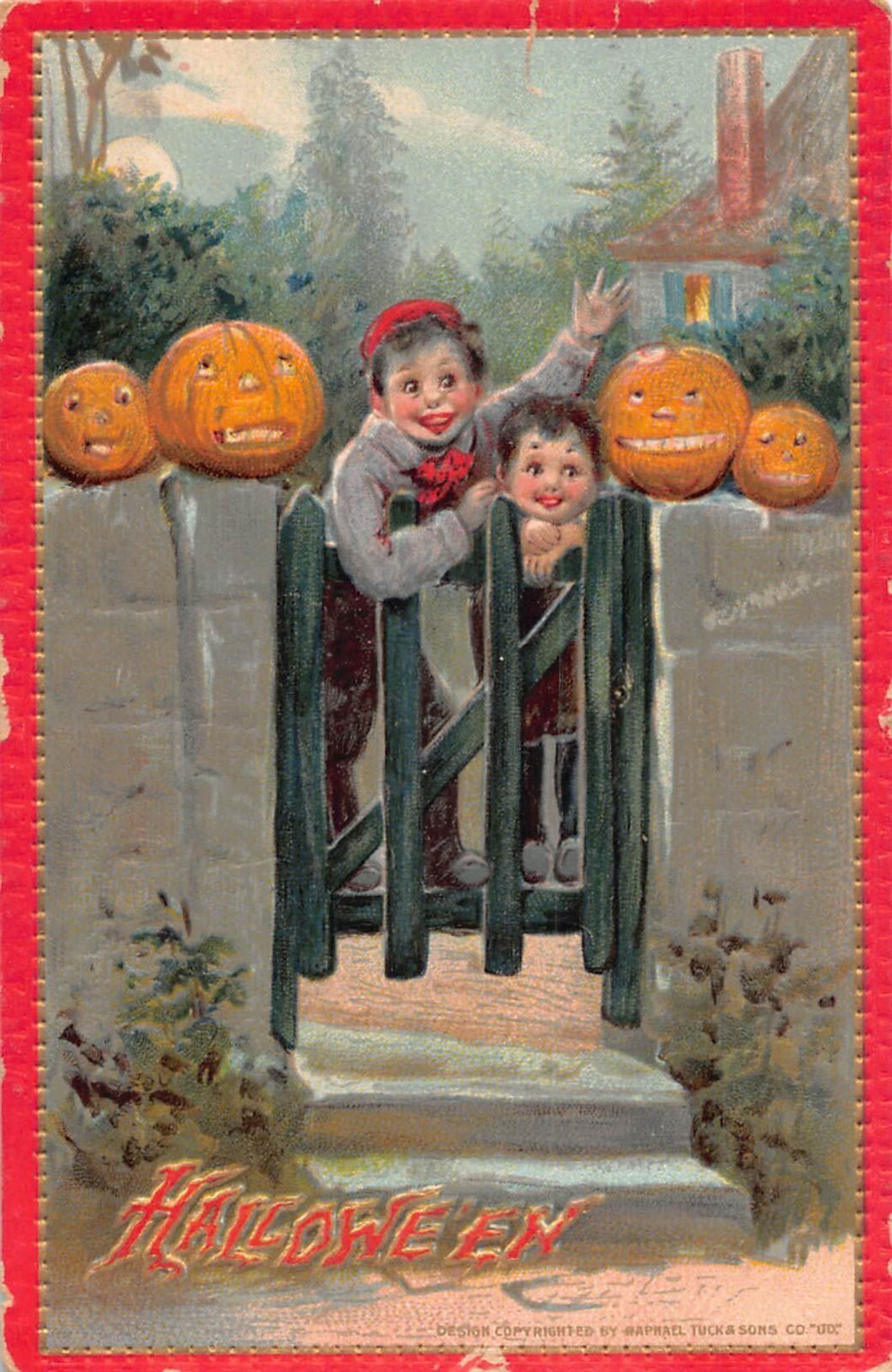 Halloween JOL boys on gate Tuck postcard hol102
