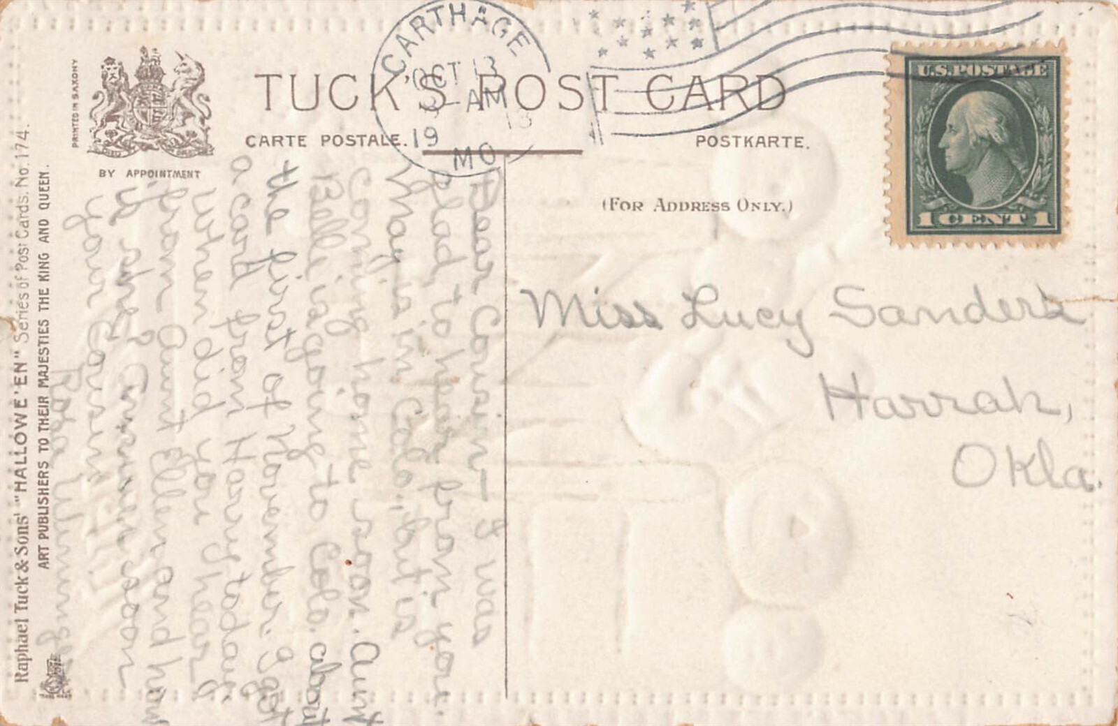 Halloween JOL boys on gate Tuck postcard hol102 All items are ORIGINAL, not reprints, .Please look at scans for postcard condition, my ideas might be different than yours Excellent - showing very little sign of wear , small corner bumpsVery good – may have worn corners or a small creaseGood—noticeable creases and or bad cornerFair -- very well worn scans will show any flaws with the backs showing any small defects.Questions always welcome All cards are send in a stiff envelope if you want more protection please let me know for a 2.00 upgrade.Due to easy digital reproduction, I can only offer a refund if item is significantly different from description. Powered by SixBit's eCommerce Solution