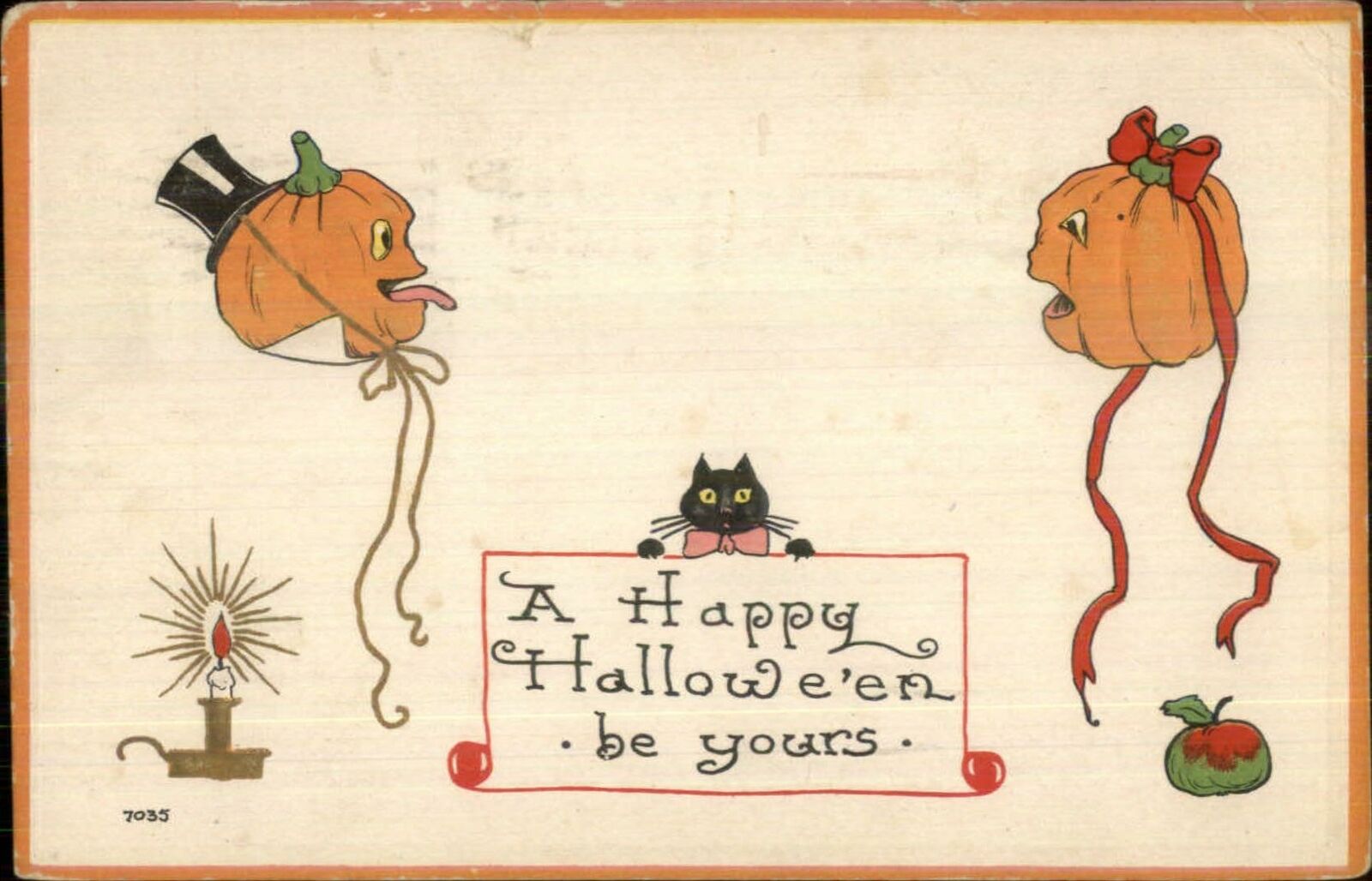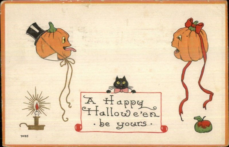 Halloween JOL Faces Sticks Tongue Out #7035 c1915 Postcard