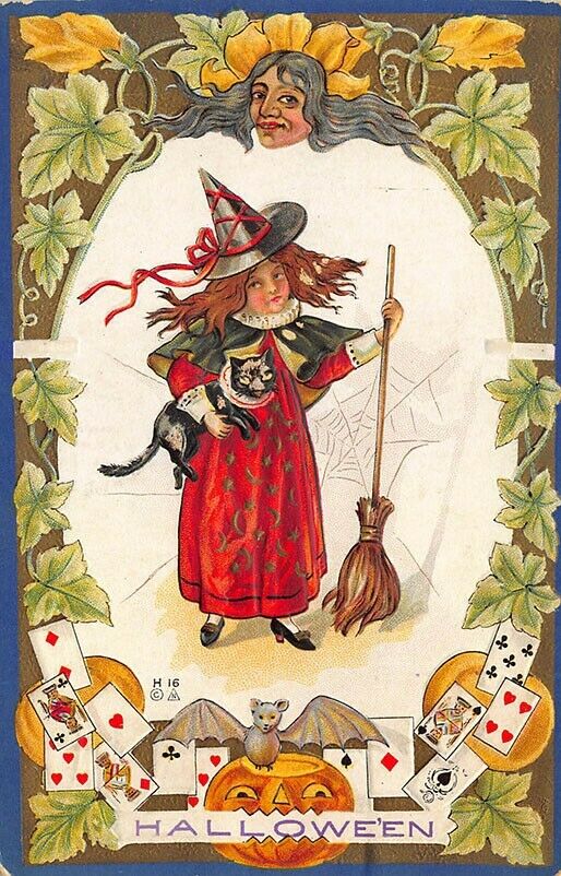 Condition: PLEASE SEE SCANS FOR CONDITION. Halloween Young Witch Black Cat Playing Cards, embossed postcard. This Postcard, Is an Original and Not a Copy. If you buy more than one item 'buy it now' Please use the ... Read More