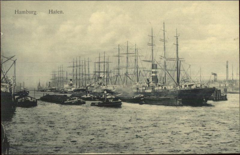 Hamburg Germany Harbor Steamships & Tugboats c1910 Postcard
