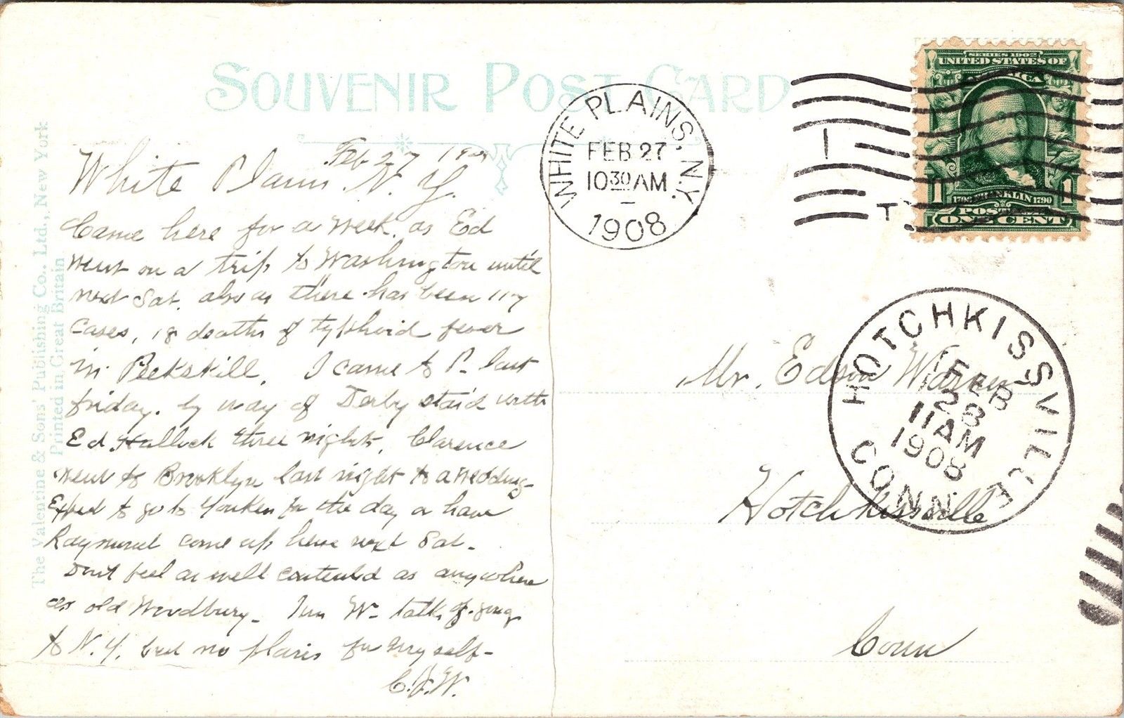 Hamilton Avenue White Plains NY c1908 Vintage Postcard K14