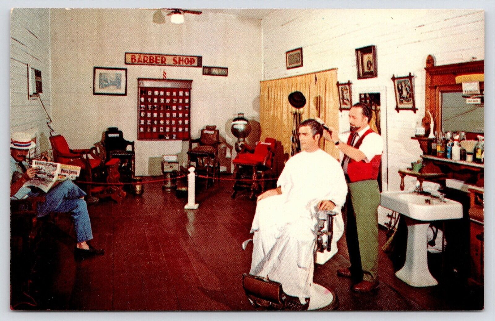 Hamilton Georgia~Mealor Tonsorial Parlor~Barber Shop Interior~1950s Postcard PC