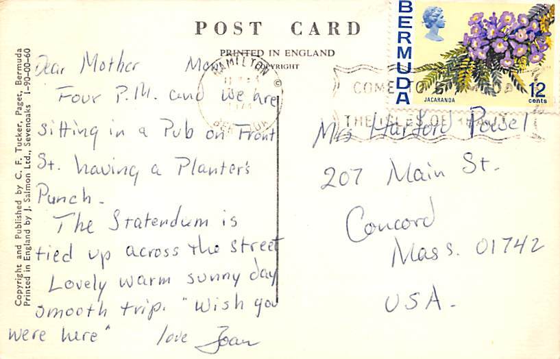 Hamilton Harbour Bermuda Postcard 1974, Grade: 1, , Size: Regular size: Approx 3 1/2 X 5 1/2 inch (9 cm X 14 cm) Grading Scale: Grade 1 = Perfect corners Grade 2 = Very Minimal corner wear, no creases Grade 3 ... Read More