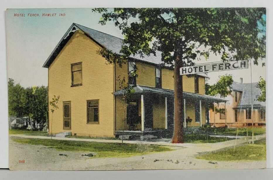 HAMLET INDIANA - HOTEL FERCH - RARE c1915 POSTCARD Q15
