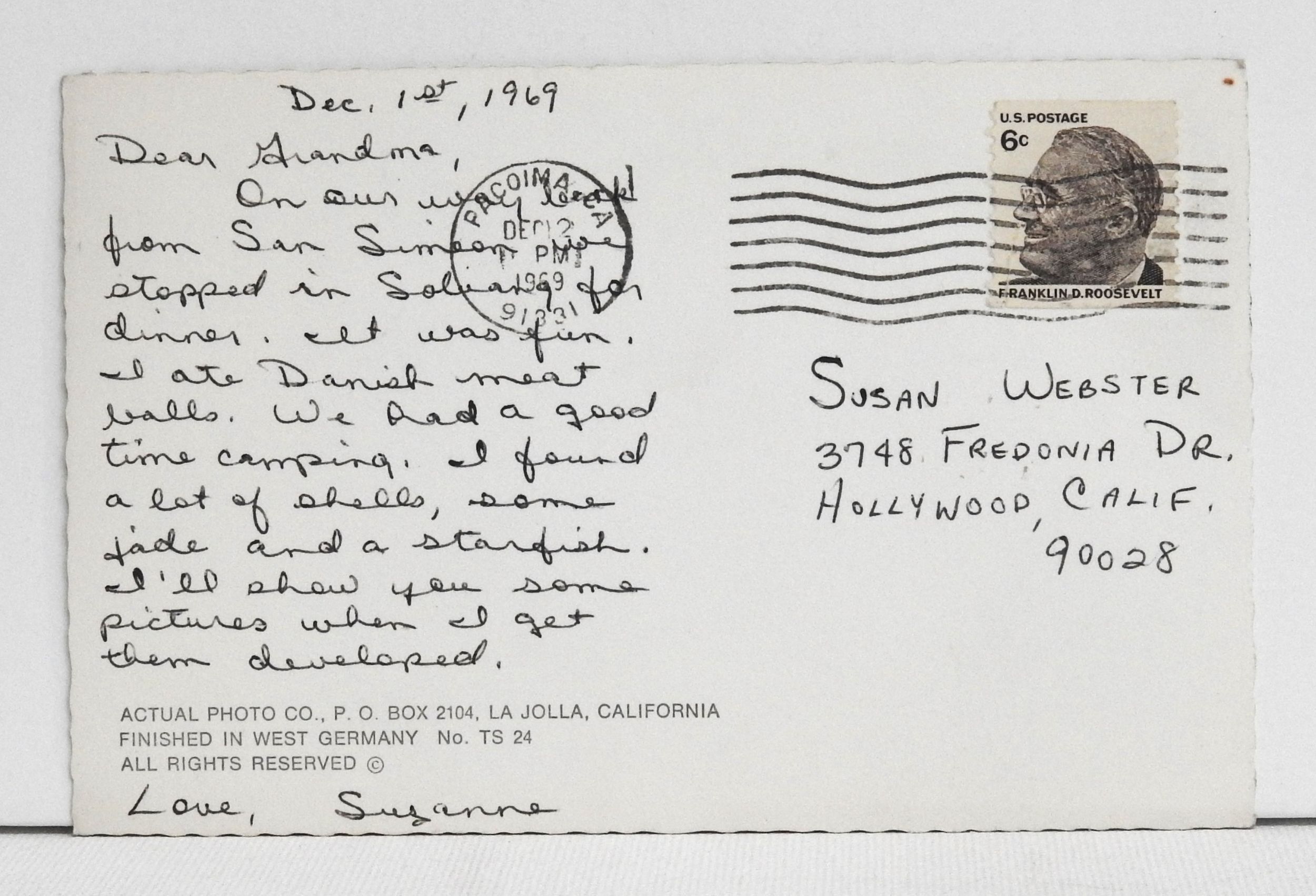 RPPC Postcard; Hamlet Square; Solvang, California; Windmill; published by Actual Photo Co. of La Jolla, California; postmarked in 1969 at Pacoima (Los Angeles), California and addressed to Hollywood, California. Clean and undamaged.Seller Information