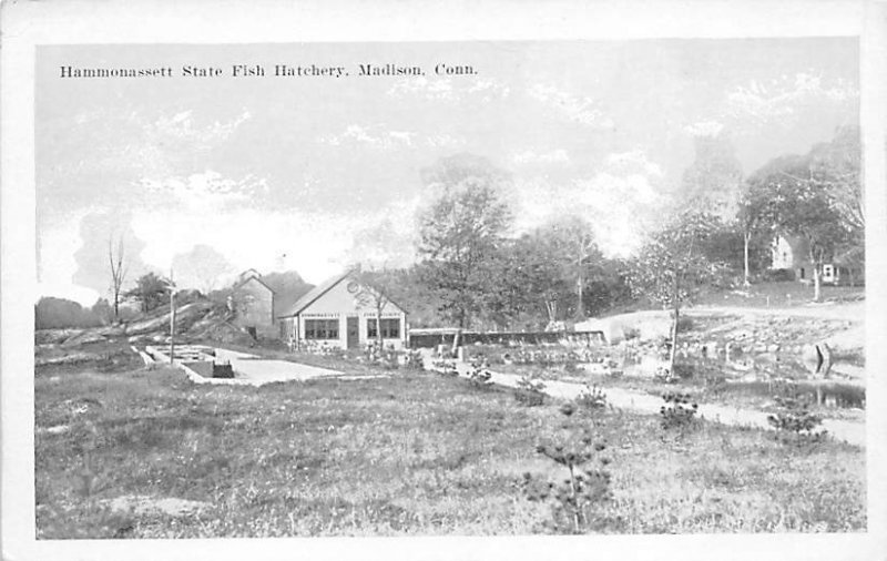 Hammonassett State Fish hatchery Madison CT Grade: 1 Size: Regular Size Postcard - approximately 3 1/2 inch x 5 1/2 inch (9 CM x 14 CM) Grading Scale: Grade 1 = Perfect corners Grade 2 = Very Minimal corner wea ... Read More
