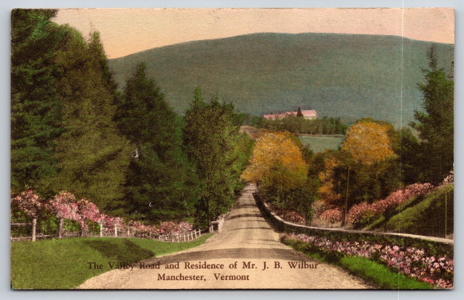 Hand Colored Manchester Vermont Valley Road Postcard
