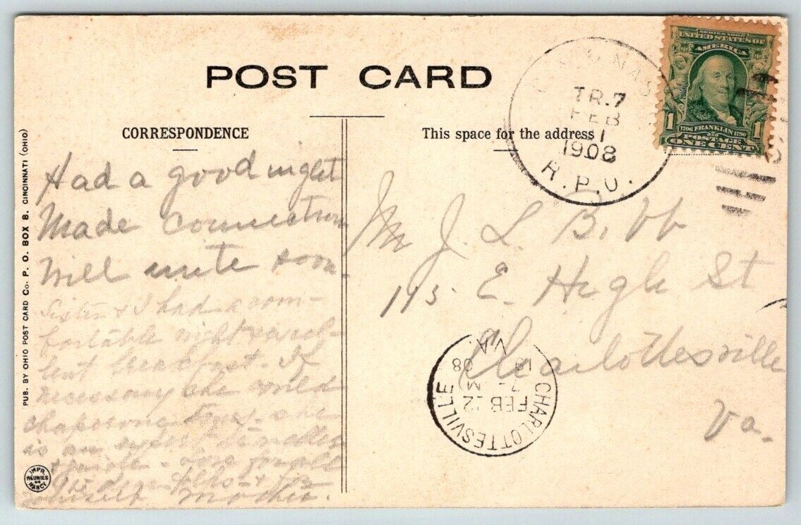 Hand Colored YMCA Building Cincinnati Ohio Postcard 1908