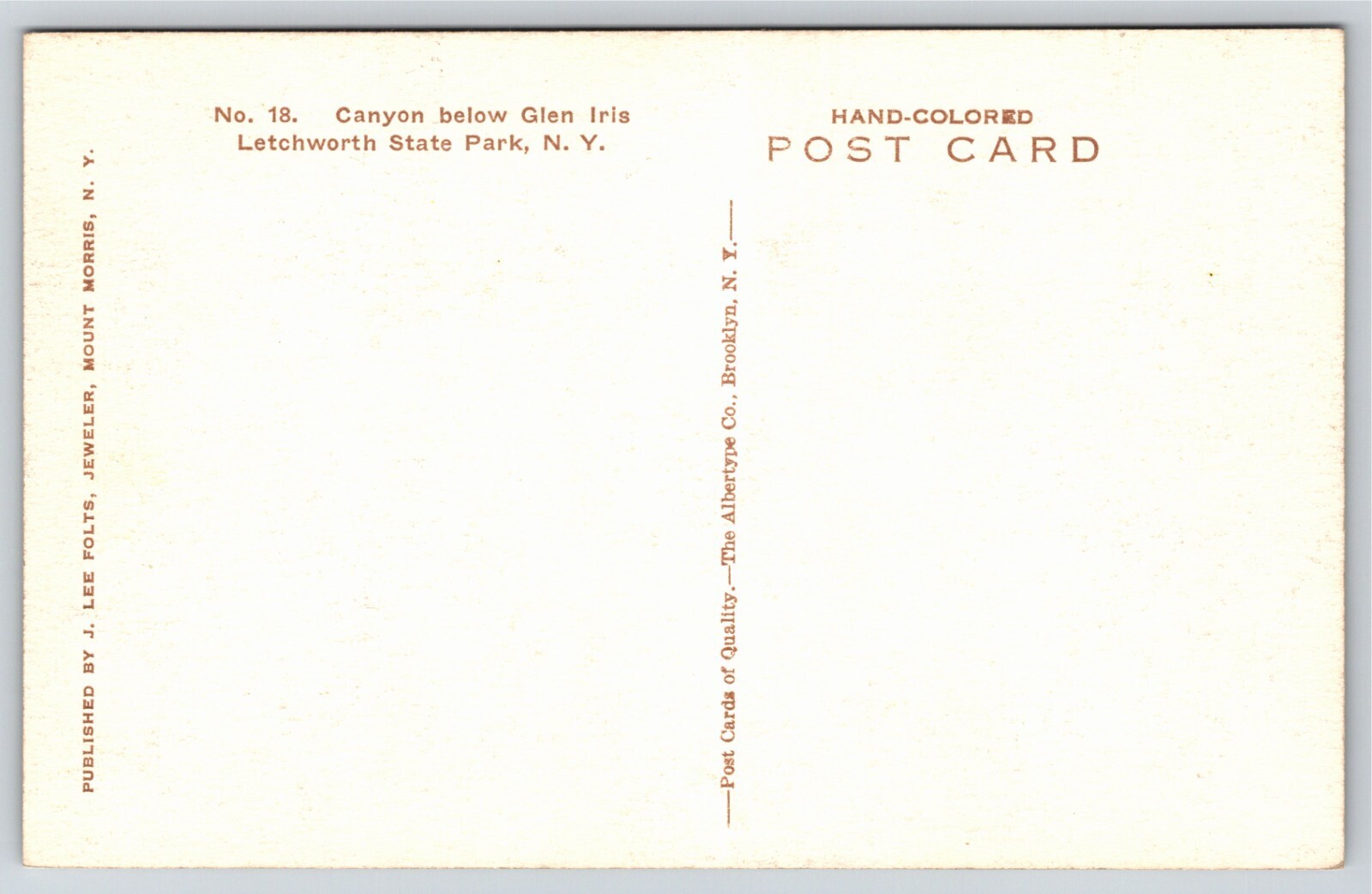 Hand-Colored~New York~Canyon Below Glen Iris @ Letchworth State Park~Vintage PC