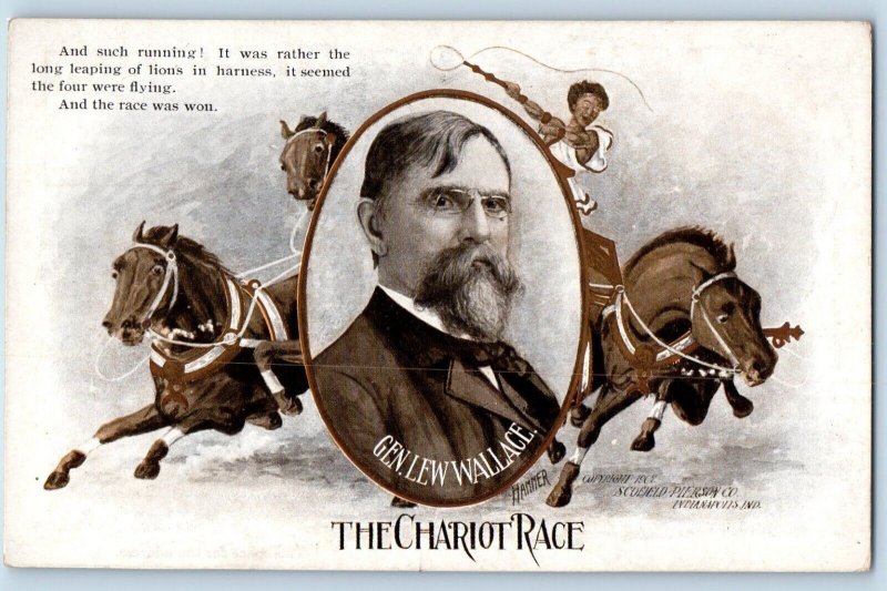 Hanner Signed Postcard Gen. Lew Wallace The Chariot Race Harness c1910's Antique