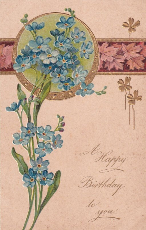 Happy Birthday Flowers Gold Germany Embossed Postcard E30