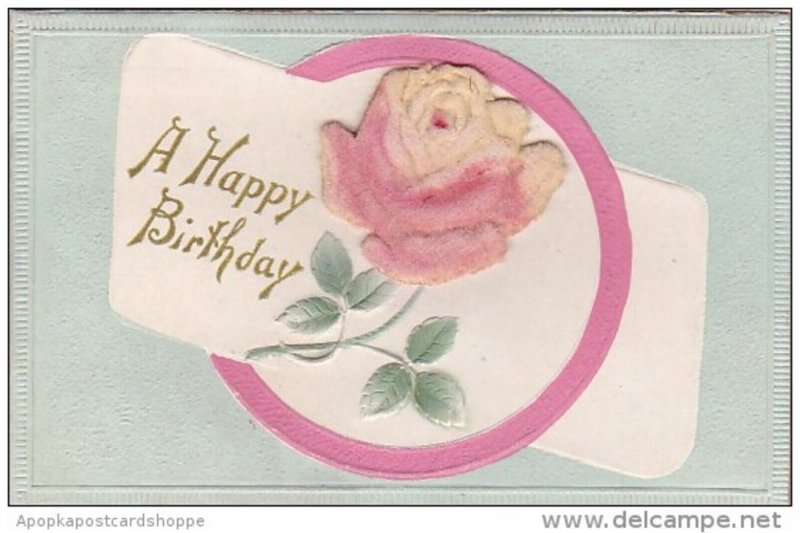 Happy Birthday Red Rose Embroidered