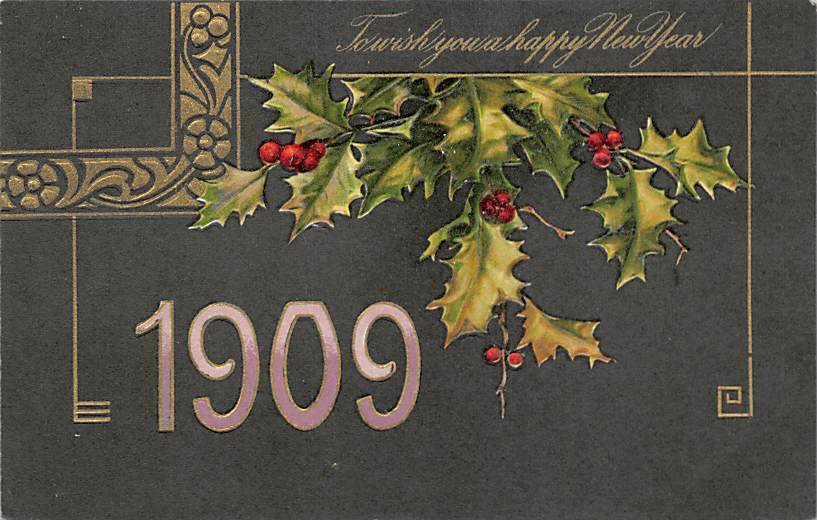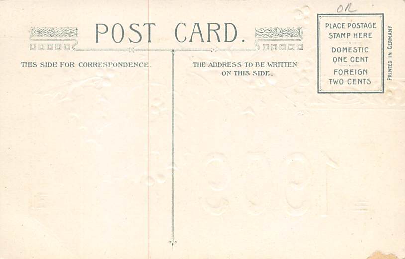 Happy New Year Year Date 1909 Postcard Postcard, Grade: 1 Size: Regular Size Postcard - approximately 3 1/2 inch x 5 1/2 inch (9 CM x 14 CM) Grading Scale: Grade 1 = Perfect corners Grade 2 = Very Minimal corne ... Read More